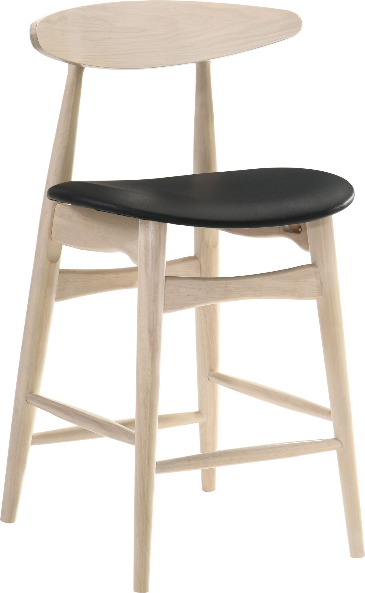 En komplett matgrupp i barhöjd bestående av ett fyrkantigt barbord och två barstolar. Bordet har ett underrede i whitewash och en svart toppskiva. Barstolarna är tillverkade i samma stil med underrede i whitewash och en sits i svart PU. Stolarna har ett svängt ryggstöd för ökad sittkomfort.