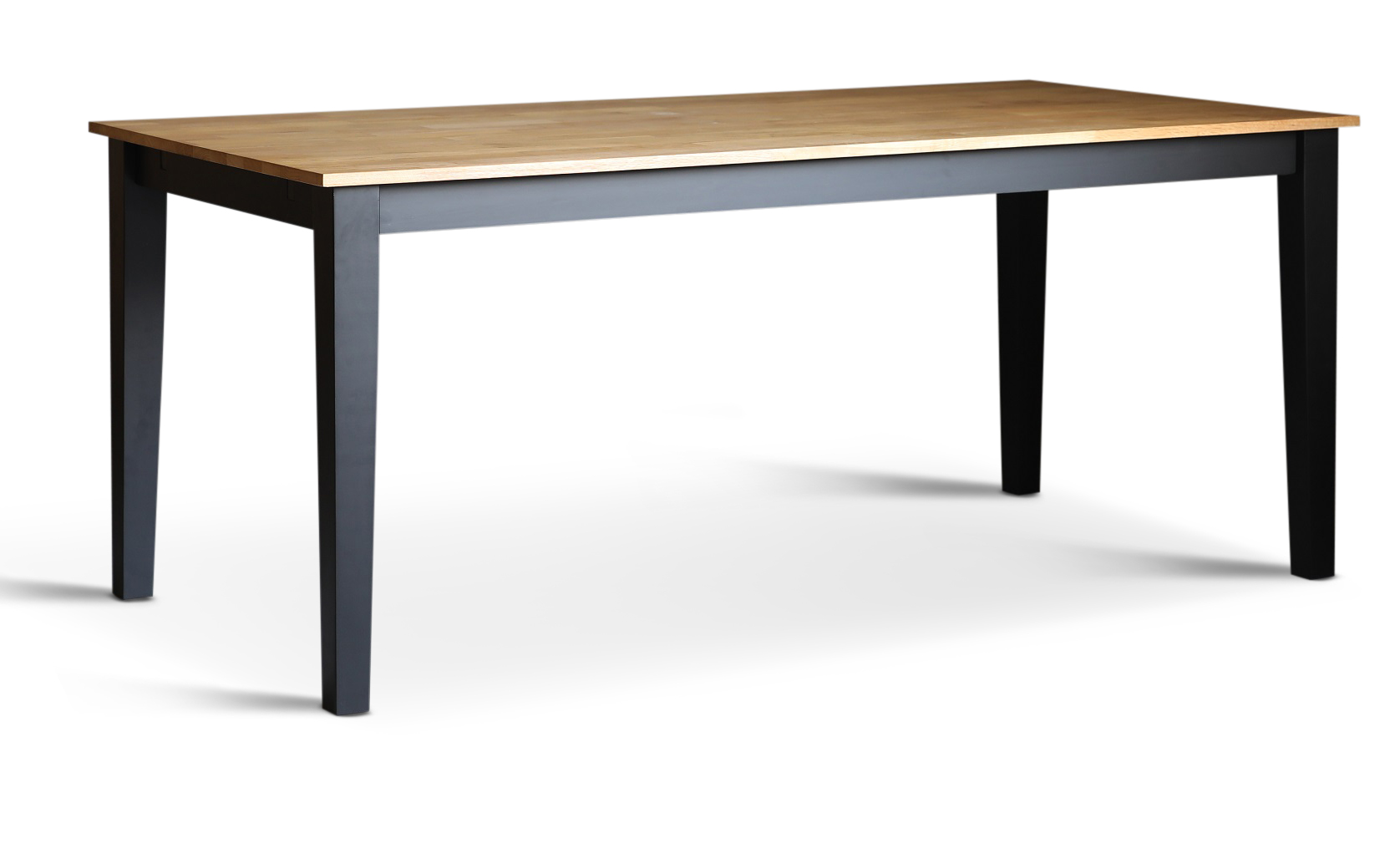 Dalsland matgrupp med stort och bra matbord med toppskiva i oljad ek och svartlackat underrede. 6 st klassiska Dalsland pinnstolar i rödlackat massivt trä.