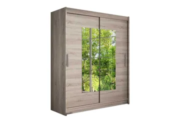 Leila Garderob 150 cm Skjutdörrar Spegel, Beige/Trä/Natur