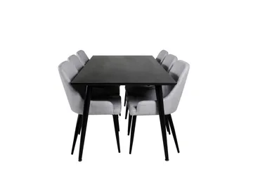 Dipp Matgrupp 180 cm Rektangulär med 6 Plaza stolar, Svart/Guld
