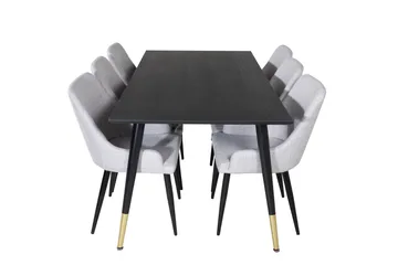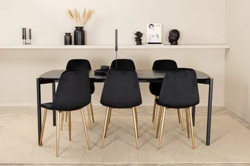 Dipp Matgrupp 180 cm Rektangulär med 6 Velvet stolar, Svart/Guld