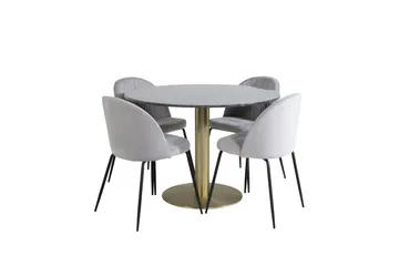 Estelle Matgrupp 106 cm Rund med 4 Polar stolar, Svart/Guld
