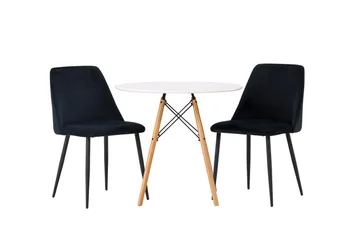Polar Matgrupp 80 cm Rektangulär med 2 Velvet stolar, Svart