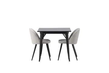 Tempe Matgrupp 80 cm Rektangulär med 2 Velvet stolar, Svart