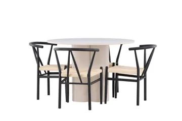 Olivia Matgrupp 110 cm Rund med 4 Agnes stolar, Beige/Vit