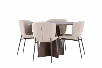 Bootcut Matgrupp 110 cm Rund med 4 Modesto stolar, Mocca/Beige