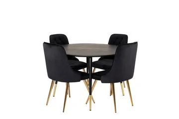 Estelle Matgrupp 106 cm Rund med 4 Polar stolar, Svart/Guld