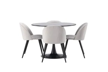 Glade Matgrupp 100 cm Rund med 4 Velvet stolar, Svart