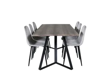 Petra Matgrupp 190 cm Rektangulär med 6 Vault stolar, Svart