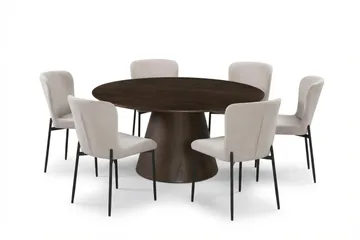 Kopparbo Matgrupp 150 cm Rund med 6 Dastoori Matstolar, Valnöt