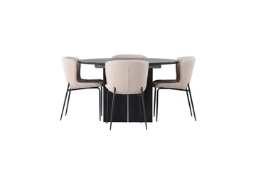 Yakidon Matgrupp 120 cm Rund med 4 Selma Stolar, Svart