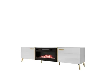 Qiu TV-bänk 40x160 cm LED-belysning, Vit/Högglans