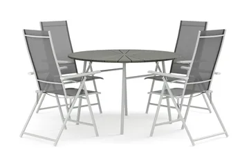 Tunis utomhus rund matgrupp 120 cm med 4 Sanna positionsstolar, Svart/Svart