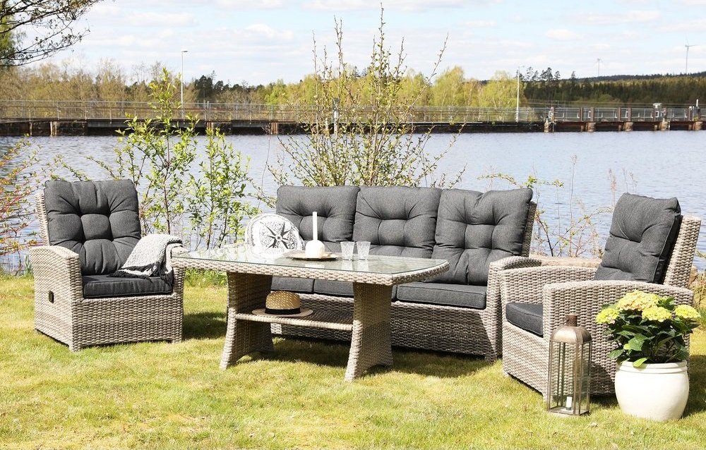 Orlando utemöbelgrupp hög rygg ställbara fåtöljer - Grå/beige