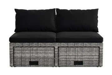 Bahamas Liten Balkongsoffa med dynor och pallar i konstrotting, Svart