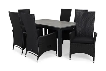 Monaco Matgrupp Utomhus 152-210x90 + 6 Jenny Fåtölj Ställbar m Dyna, Svart/Grön