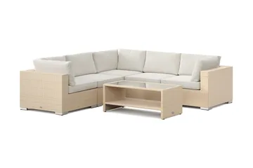 Bahamas utomhus hörnsoffa 5-sits vändbar och bord med hylla, Beige