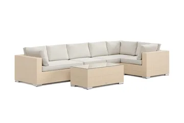 Bahamas utesoffa 6-sits vändbar schäslong med avslut och bord med hylla, Beige