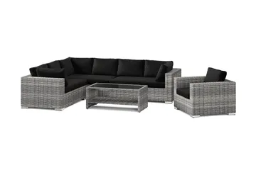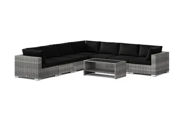 Bahamas utomhus hörnsoffa 6-sits vändbar med fåtölj och bord, Svart