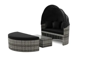 Florens Rund dubbel Solsäng med tak - Soffbord med glasskiva i konstrotting, Grå