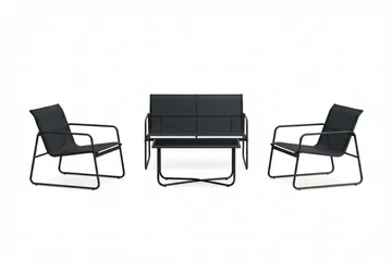Pelanda Loungegrupp - Soffa och 2 fåtöljer i stål soffbord med frostad glasskiva, Svart