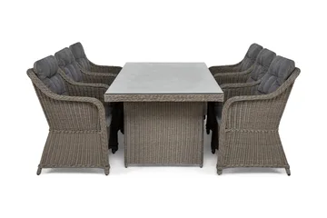 Utemöbelgrupperna har enkel, stilren design för att passa i alla miljöer. Vill du skapa en mer personlig stil kan du lägga vackra prydnadskuddar i soffor och fåtöljer. En dekorativ bordsduk bidrar till stämningen och den är, liksom kuddarna, lätt att plocka in.