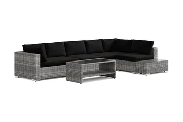 Bahamas L-formad utesoffa vänster, 6-sits med bord, Svart